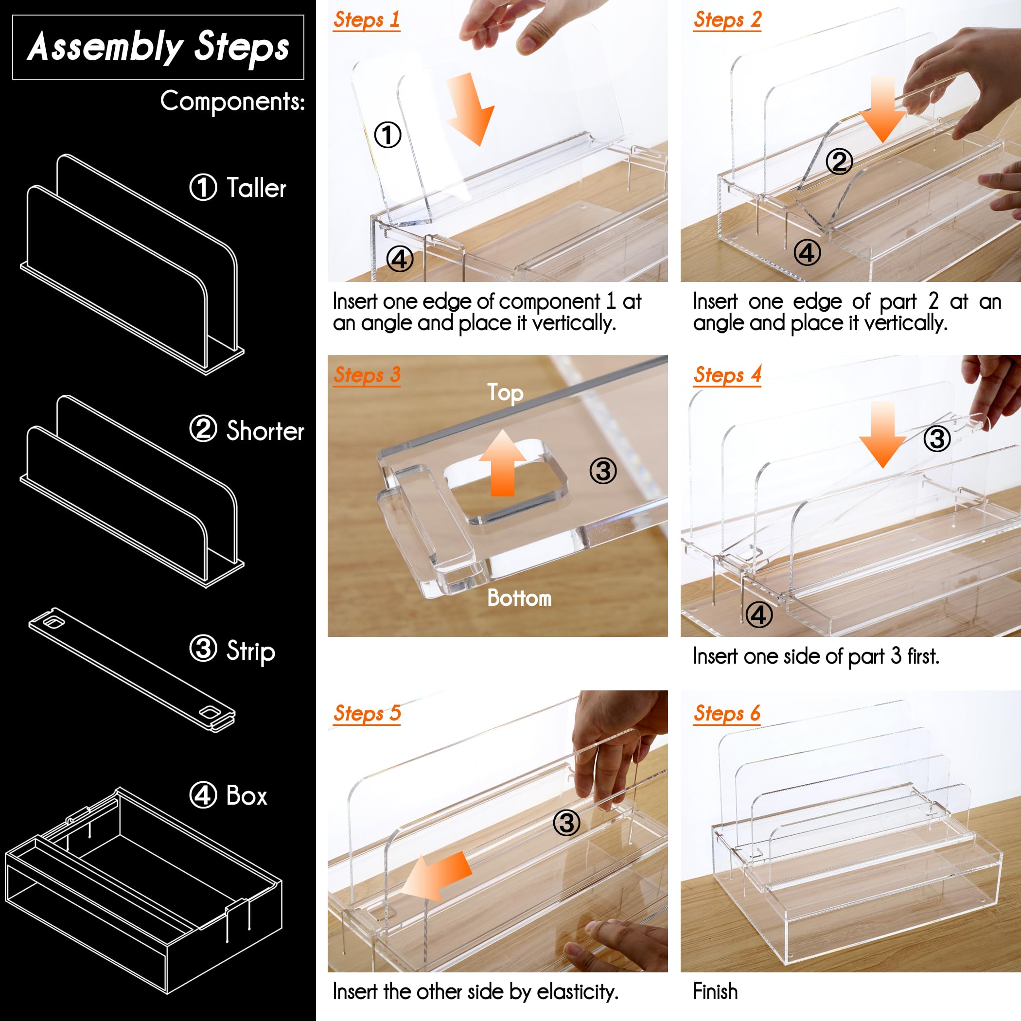 - 【Organize Your Workspace Efficiently】The acrylic file organizer, designed with tiered compartments and acrylic dividers, allows for quick identification of each section’s contents, providing easy access to items for enhanced productivity