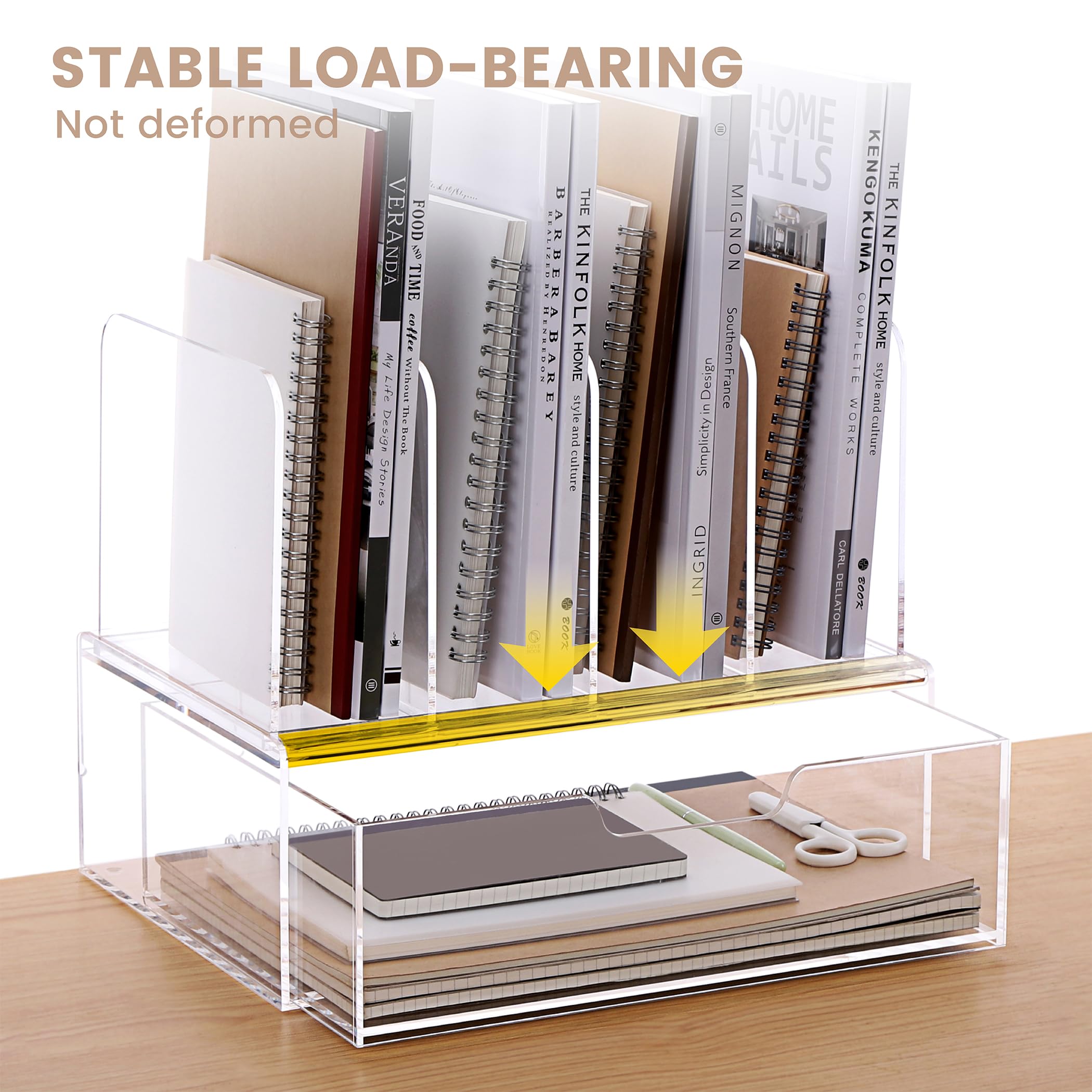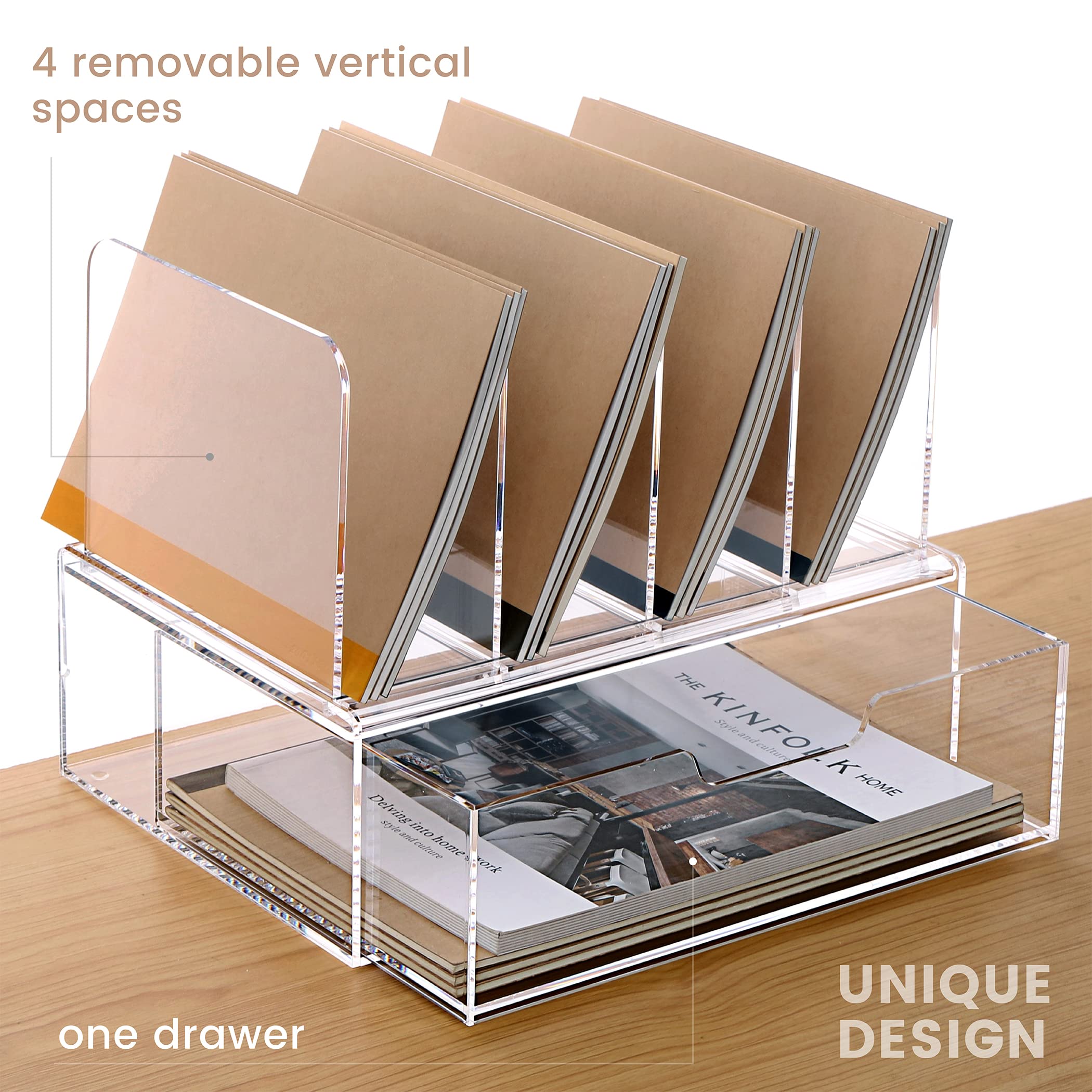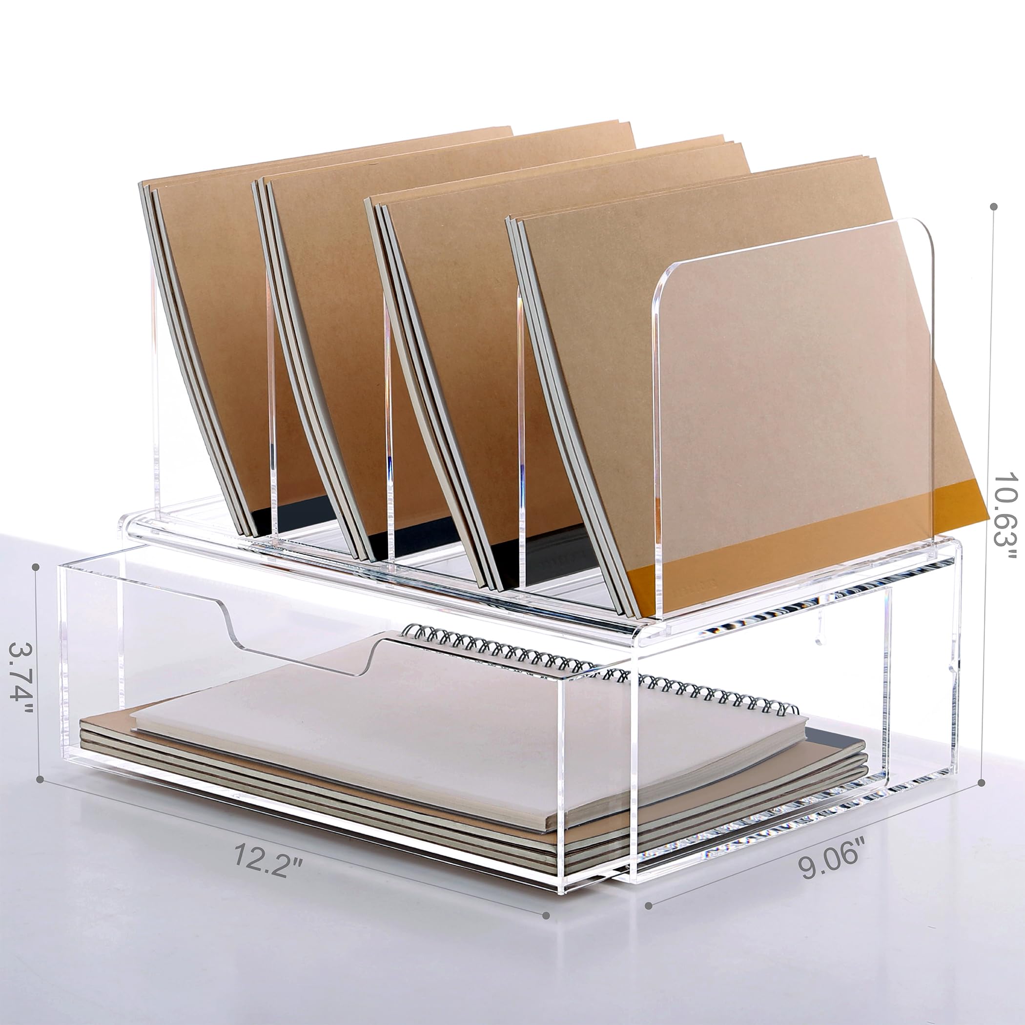 - Desk Organizer with Drawer: This acrylic desk organizer features a 4-tier file holder and acrylic drawer, efficiently utilizing both horizontal and vertical space for optimal office organization