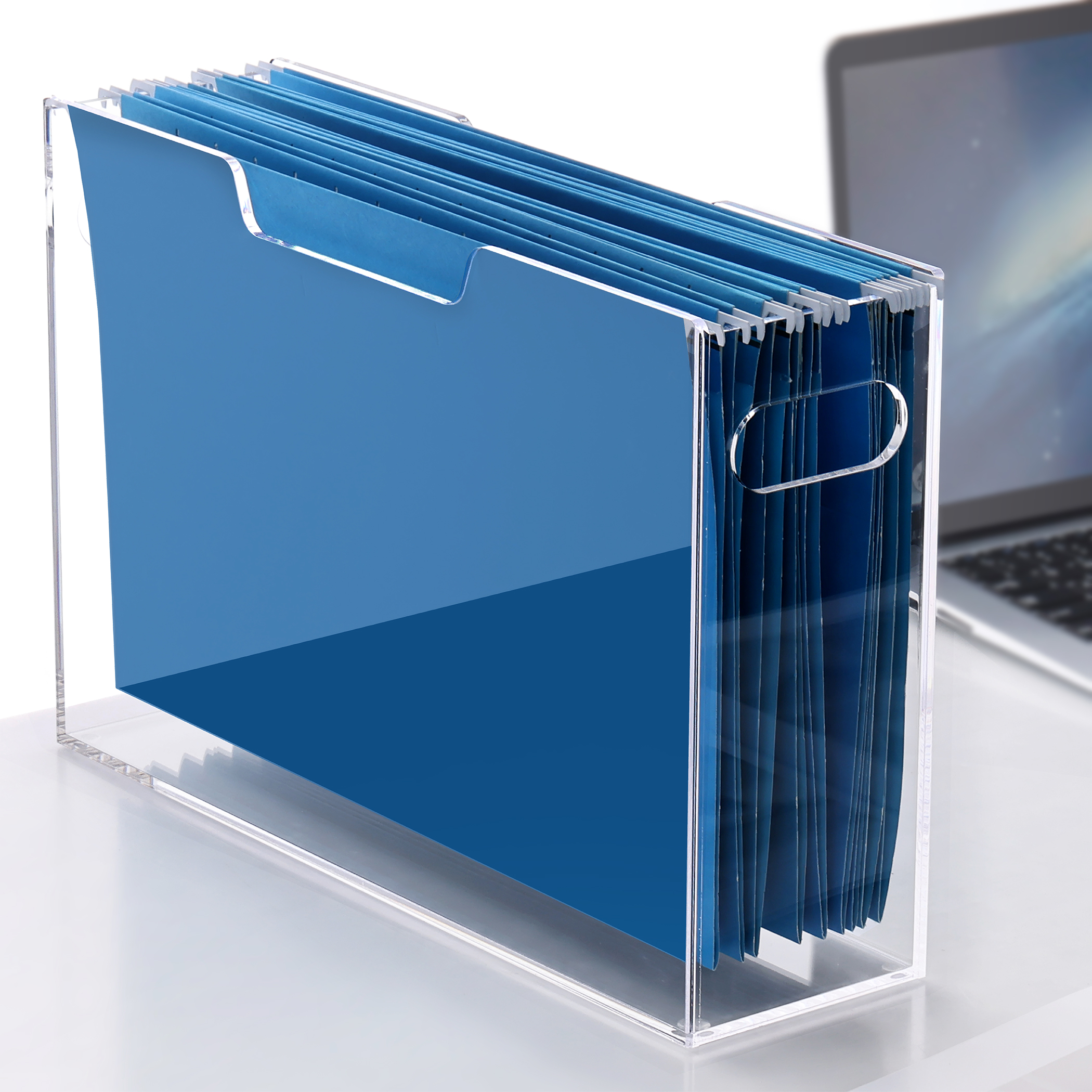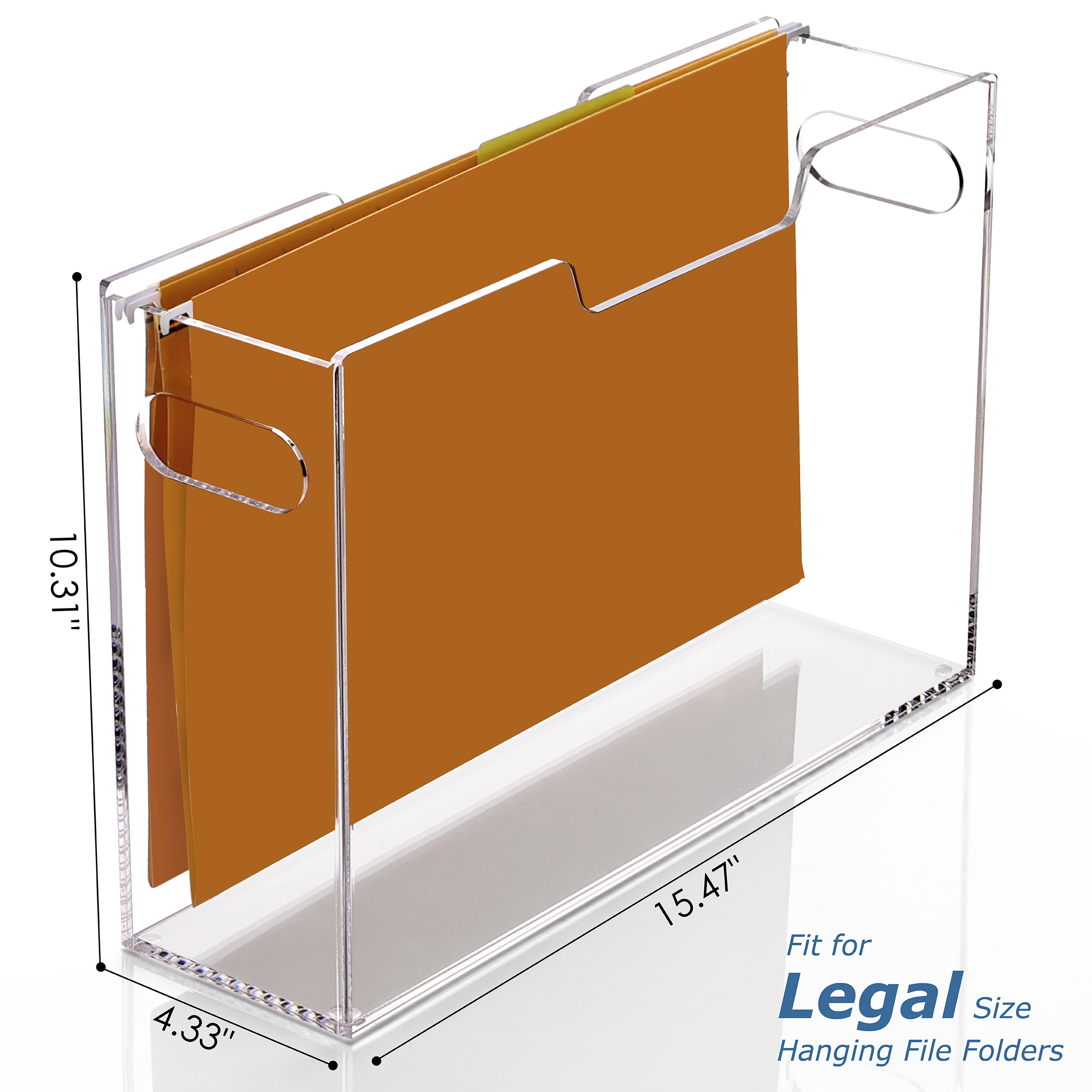 - Acrylic Hanging File Organizer: Perfect for organizing legal size hanging file folders, documents, magazines, paper and more. This acrylic hanging file organizer keeps your workspace neat and stylish